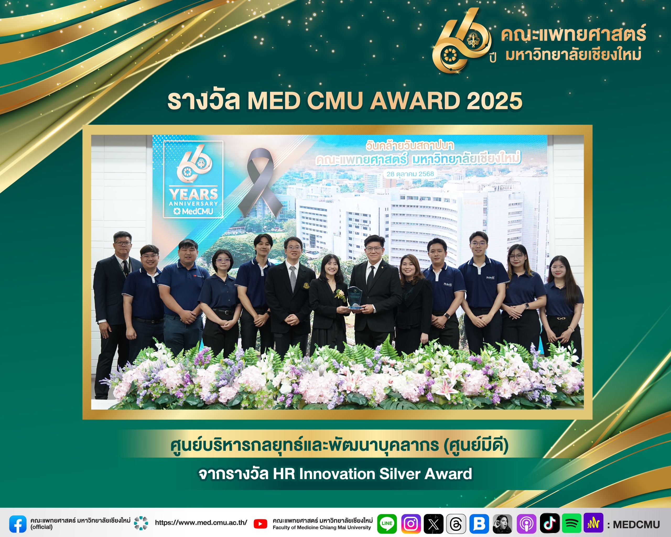 Poomrapee Kitphithak2025-11-03T09:34:48+07:00คณะแพทยศาสตร์ มหาวิทยาลัยเชียงใหม่ ขอแสดงความยินดีกับศูนย์บริหารกลยุทธ์และพัฒนาบุคลากร (ศูนย์มีดี) ในโอกาสได้รับรางวัล MED CMU AWARD 2025 จากรางวัล HR Innovation Silver Award เนื่องในวันคล้ายวันสถาปนาคณะแพทยศาสตร์ ครบ 66 ปี ในวันที่ 28 ตุลาคม 2568 ณ ห้องประชุมชั้น 2 อาคารเรียนรวม คณะแพทยศาสตร์ มช. ภาพ / ข่าว : งานสื่อสารองค์กร คณะแพทยศาสตร์ มหาวิทยาลัยเชียงใหม่