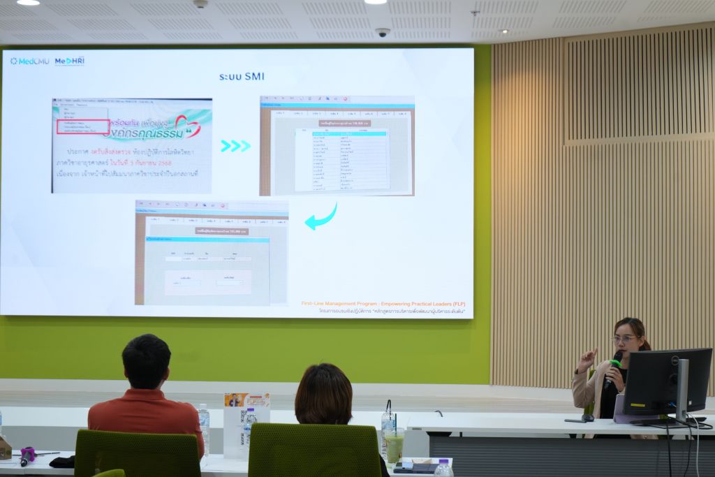 ระหว่างวันที่ 10-12 กันยายน 2568 รศ.พญ.สุรินทร์พร ลิขิตเสถียร รองคณบดีด้านทรัพยากรมนุษย์และวัฒนธรรมองค์กร คณะแพทยศาสตร์ มช. ได้เข้าร่วมเป็นกรรมการ Pitching Project ในกิจกรรมการนำเสนอโครงการของผู้เข้าอบรม หลักสูตรการบริหารเพื่อพัฒนาผู้บริหารระดับต้น First-Line Management Program : FLP “module 3 – Innovation driven Project Initiative” โดยมีคณะกรรมได้แก่ ผศ.นพ.มนัสวี มะโนปัญญา ผู้ช่วยคณบดีด้านทรัพยากรมนุษย์และวัฒนธรรมองค์กร, คุณมะลิวรรณ หินทอง เลขานุการคณะแพทยศาสตร์ มช., คุณวีรชาติ ชูฤทธิ์ หัวหน้าฝ่ายการพยาบาลปฏิบัติหน้าที่รองผู้อำนวยการโรงพยาบาลมหาราชนครเชียงใหม่, รศ.นพ.จักรกริช กล้าผจญ หัวหน้าภาควิชาเวชศาสตร์ฟื้นฟู, คุณพงศ์สถิตย์ คำมูล รักษาการหัวหน้างานบริหารงานบุคคลและบุคลากร, คุณสินีนาถ สันติธีรากุล หัวหน้างานบริหารงานวิจัย, พว.สุคนทา คุณาพันธ์ รองหัวหน้าฝ่ายการพยาบาล โรงพยาบาลมหาราชนครเชียงใหม่และคุณฤทธิเดช วงค์จันทร์คำ หัวหน้าหน่วยสารสนเทศงานเทคโนโลยีสารสนเทศ เข้าร่วม เพื่อรับฟังการนำเสนอ และร่วมวิพากษ์ให้ข้อเสนอแนะโครงการแก่ผู้เข้าอบรม ทั้งนี้จัดขึ้น ณ ห้องประชุมชั้น 15 อาคารสุจิณโณ คณะแพทยศาสตร์ มหาวิทยาลัยเชียงใหม่