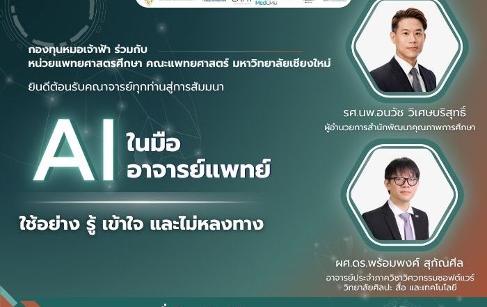 วัตถุประสงค์ เพื่อให้อาจารย์และบุคลากรสายสนับสนุนวิชาการสามารถ อธิบายหลักการทำงานเบื้องต้นของ Generative AI และ ยกตัวอย่างการประยุกต์ใช้ในการจัดการเรียนการสอนทางการแพทย์ เลือกใช้และทดลองสร้างสื่อการสอนเบื้องต้น เช่น กรณีศึกษาผู้ป่วยจำลอง หรือ ข้อสอบแบบปรนัย (MCQ) ด้วยเครื่องมือ Generative AI ที่แนะนำได้ อภิปรายถึงประเด็นด้านจริยธรรม ข้อจำกัด และแนวทางการตรวจสอบความถูกต้องในการใช้ Generative AI เพื่อการศึกษาได้อย่างเหมาะสม แลกเปลี่ยนแนวคิดและประสบการณ์ เพื่อต่อยอดในการนำ Generative AI ไปประยุกต์ใช้กับรายวิชาที่ตนเองรับผิดชอบ วิทยากร [...]