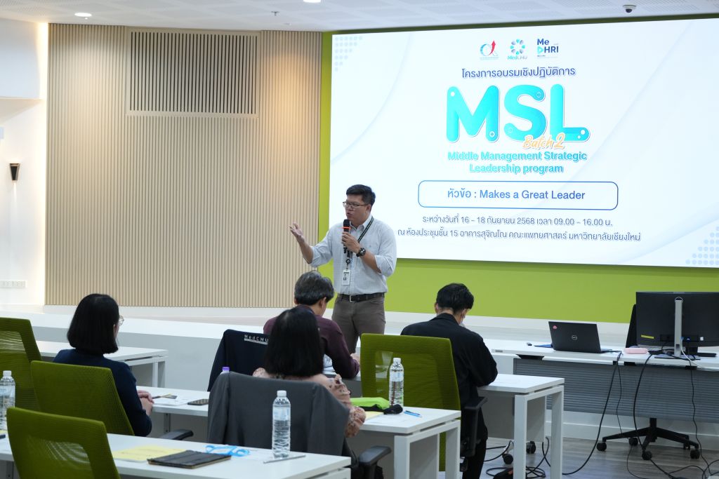 วันที่ 16 – 18 สิงหาคม 2568 ณ ห้องประชุมชั้น 15 อาคารสุจิณโณ คณะแพทยศาสตร์ มช. ได้จัดการอบรมในหลักสูตรการบริหาร เพื่อพัฒนาผู้บริหารระดับกลาง Middle Management Strategic Leadership Program (MSL Batch:2) หัวข้อ Makes A Great Leader โดยวิทยากรจาก สถาบันเพิ่มผลผลิตแห่งชาติ Thailand Productivity Institute (FTPI)