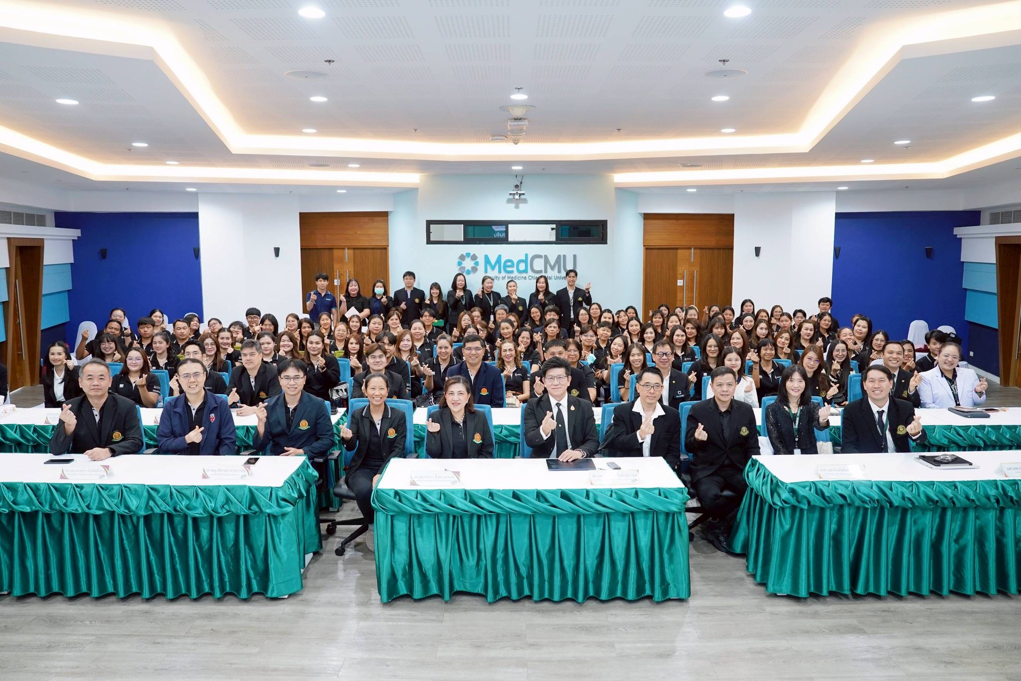 รศ.นพ.นเรนทร์ โชติรสนิรมิต คณบดีคณะแพทยศาสตร์ มช. พร้อมด้วยคณะผู้บริหารคณะแพทยศาสตร์ มหาวิทยาลัยเชียงใหม่ ให้การต้อนรับ รศ.พญ.อัจฉรา ตั้งสถาพรพงษ์ คณบดีคณะแพทยศาสตร์ มหาวิทยาลัยธรรมศาสตร์ และคณะผู้บริหาร บุคลากรคณะแพทยศาสตร์ มหาวิทยาลัยธรรมศาสตร์ จำนวน 94 ท่าน